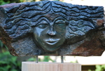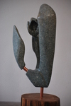 2014She is fors gevormd vrouwelijk beeld. De steensoort is serpentijn. Het beeld is deels gepolijst en deels ruw.