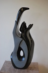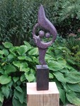2016Dans het leven samen.Lichtvoetig, genietend. Twee vrouwelijke dansende figuren. Op houten sokkel en rvs-pin.