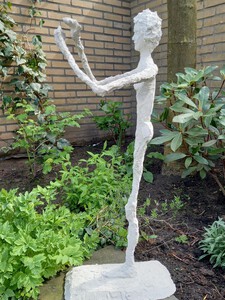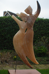 2014Dit beeld is gemaakt voor de Atelierroute Nijkerk met het thema 'De Reis'. De bijbehorende tekst luidt als volgt: Droomreiziger, Droomvogel Niet gebonden aan land, stad of dorp, niet gehinderd door tijd of grenzen, noch door files, stress en geld, kunnen we reizen in onze dromen. Dromen …...... Op de machtige vleugels van de droom, reizen naar bestaande en andere bestemmingen. Van hier naar Peking, New York of Amersfoort, onze fantasie is de brandstof voor de reis, voor de droom. De droom ......... Van de aarde naar de maan, de sterren of verder, ….. verder. Zonder duidelijke bestemming of doel, slechts ….... verder. Zomaar blijven zweven/dromen op de thermiek van het gevoel. Als een albatros. Als een droomvogel. Droomvogel.