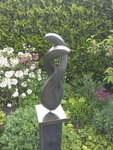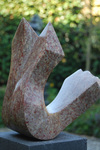 2016Twee entiteiten zijn in dit beeld verstrengeld en in de basis vormen zij een bolvormige eenheid. De entiteiten kunnen mensen zijn, een echtpaar, twee vrienden/vriendinnen, maar ook twee organisaties met een gesamenlijke oorsprong/basis en onderlinge afhankelijkheid/belangen. De steensoort van het beeld is Springstone, de sokkel is hardsteen