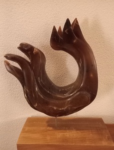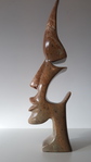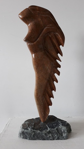 2015Het beeld "Trots" is gemaakt uit bruine albast. Ik heb de trots vastgelegd in de houding van het beeld, een vogelfiguur.