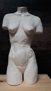 2017Geboetseerde torso ahv voorbeeld in gips. Afgegoten in gips.