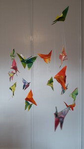 2020Een zerm vlinders gemaakt van gekleurd papier.