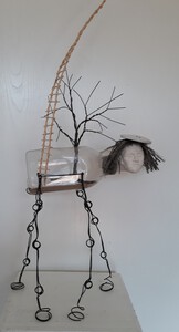 2021Object ontwikkeld met als inspiratie de "Urinoir" van Marcel Duchamp. Gebruikte materialen: ijzerdraad, kunstklei, papier, vitrage gips