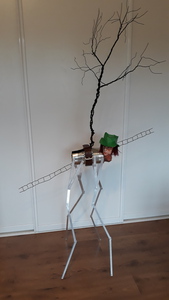2020Boommens, versie 4 Interpretatie Boommens (Jeroen Bosch) met de hoge poten van de olifanten van Salvador Dali.