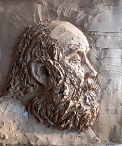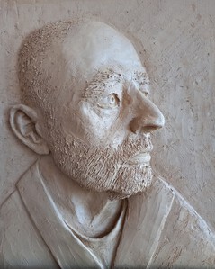 2020Een zelfportret gemaakt in klei en afgegoten in gips. Niet tevreden over het resultaat. Daarom omgewerkt naar Zelfportret? De selfie in witte gips kon al voorzien worden van een vraagteken vanwege de beperkte gelijkenis. De nieuwe versie levert ook een vraagteken op, alleen om heel andere redenen.